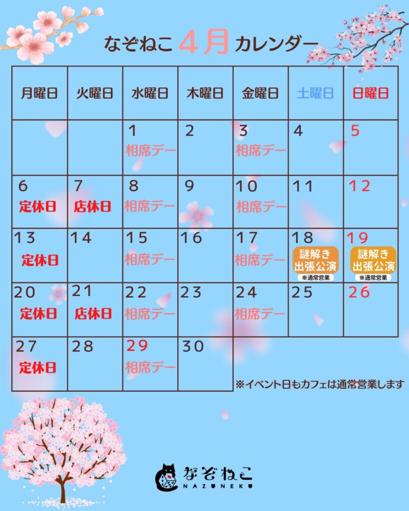 なぞねこ4月のカレンダー